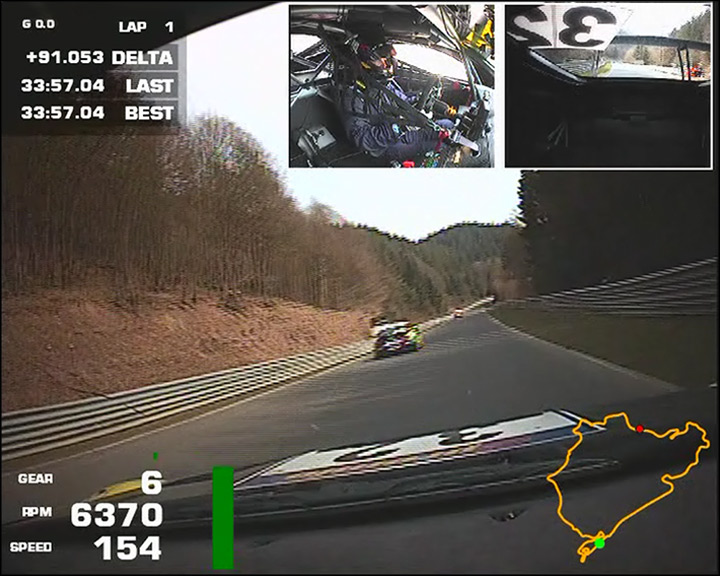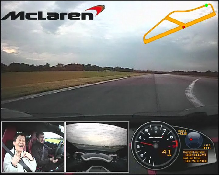 Logo - Custom gauge - lat./long accel - current & last lap time - lap counter - text - track map - picture-in-picture video