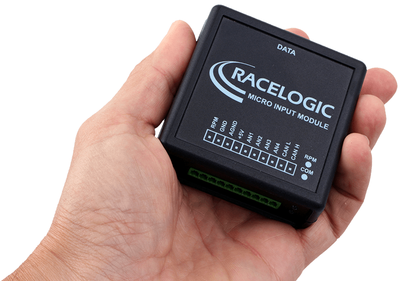 The VBOX Micro Input Module (RLVBMICIN01) is a small, highly cost-effective module ideal for use in applications that only require a minimum of additional signals to be recorded, with one RPM (digital) input and four analogue inputs.