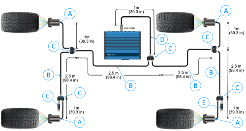 After the sensor installation is complete, the LEMO connector from the temperature sensor loom must be plugged into a “CAN/SER” socket on the side of the VBOX Touch.